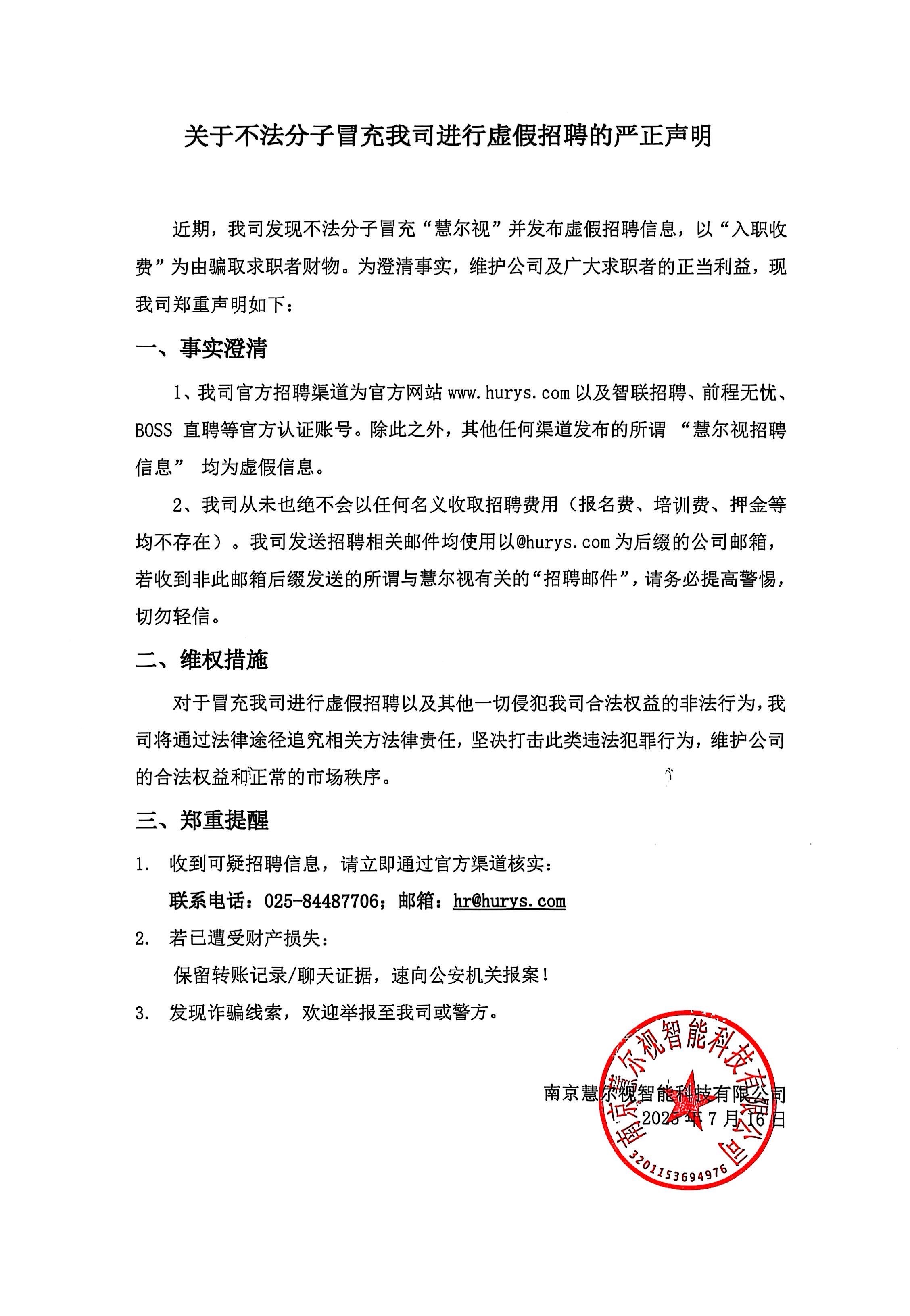 關(guān)于不法分子冒充我司進(jìn)行虛假招聘的嚴(yán)正聲明
